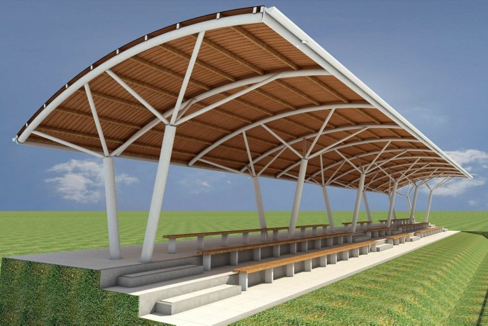 Galeria Koncepcje architektoniczne Architektura i projekty budowlane Nadzory inwestorskie Pozostałe Projekty wnętrz 2016-05-11 Łukowa - trybuny boiska do piłki nożnej